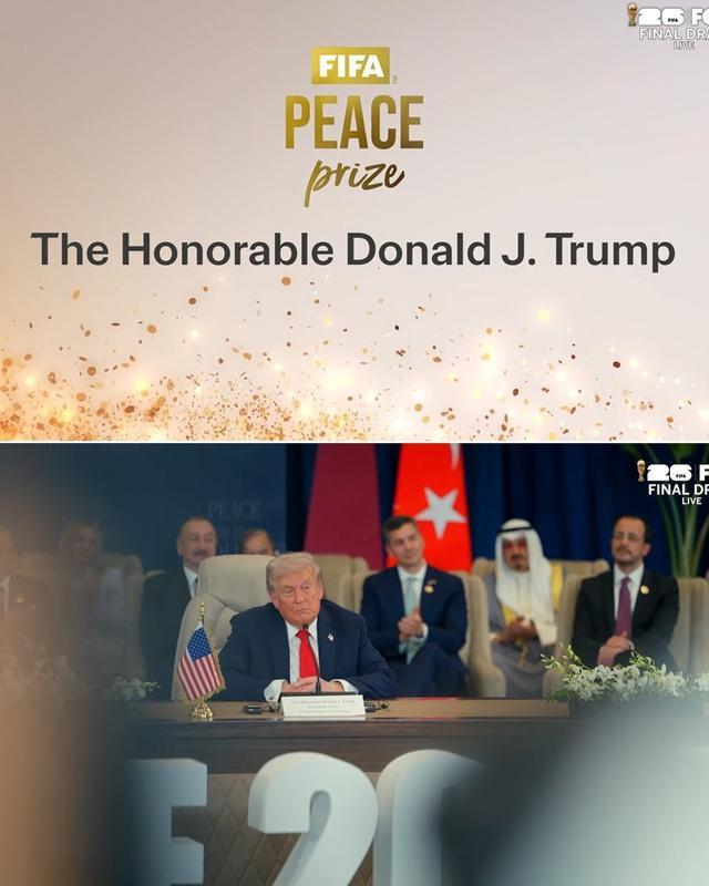 当地时间12月5日,2026年美加墨西哥世界杯抽签仪式在美国举行。特朗普总统出席了抽奖仪式。抽奖开始前,国际足联主席因凡蒂诺向特朗普颁发了2025年国际足联和平奖。获奖后,特朗普表示:“这无疑是我一生中获得的最高奖项之一。我们夺去了数百万人的生命。就刚果而言,已有1000万人在灾难中丧生,而且死亡人数还在不断上升。”因凡蒂诺的工作做得非常出色,创下了门票销售的新纪录。这既是对你的极大认可,也是足球界的一个很高的奖项——我们称之为‘足球’——门票销售数字超出了我们之前的预期。”11月5日,国际足联正式宣布将设立一个新奖项——“国际足联和平奖”。那些本着和平精神不懈努力缓解冲突、团结人民的人们的伟大成就。”